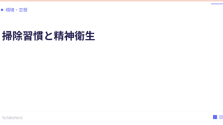 掃除習慣と精神衛生を徹底解説。きれいな環境がメンタルヘルスに与える影響を科学的な根拠とともに紹介。今日から始められる実践法もまとめました。 YutakaNestで小さな投資から豊かな生活を。